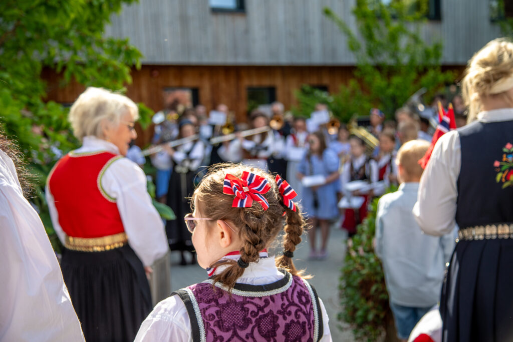 HØGTIDELEG: Skulemusikken starta heile feiringa med nasjonalsongen. FOTO: Siri Ravn
