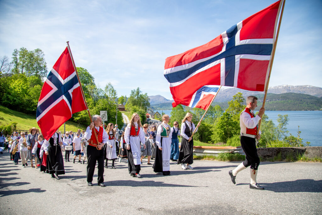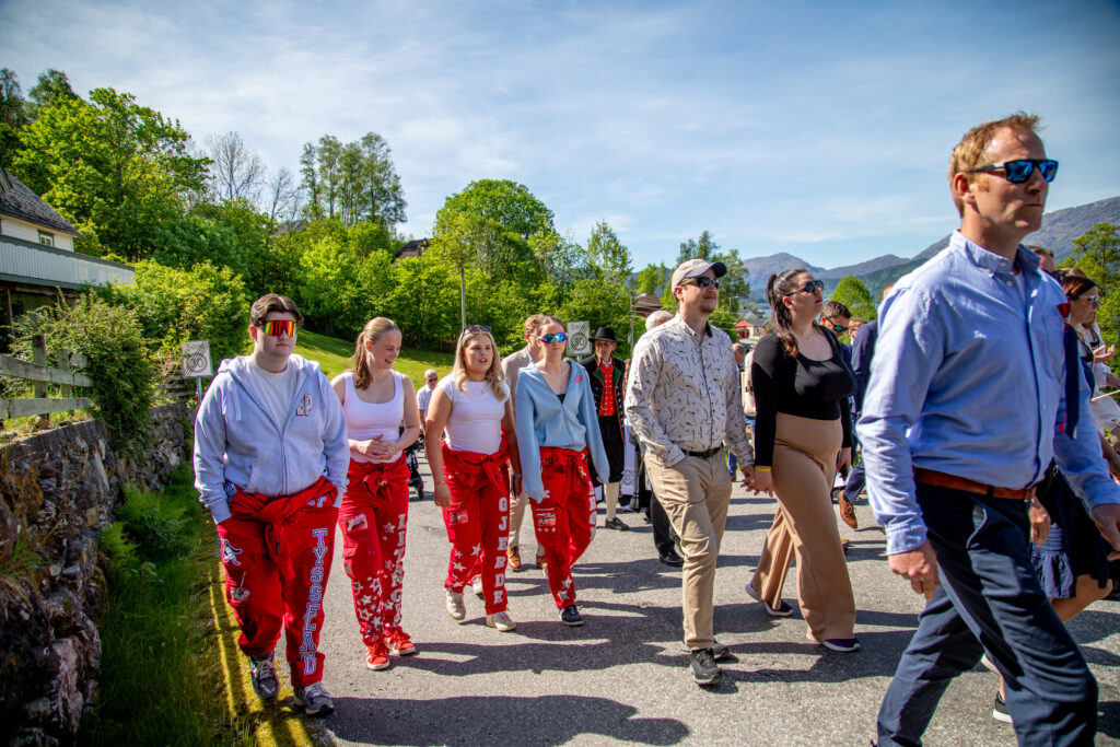 NASJONALROMANTISK: Med fjord og fjell i balgrunnen spaserte dei mange samningane oppover bakkane. FOTO: Siri Ravn