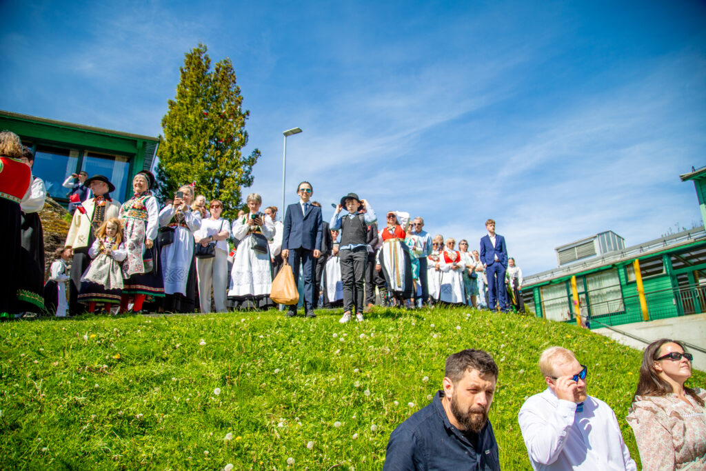 PUBLIKUM: Mange hadde møtt opp for å vera med på feiringa, også dei som ikkje gjekk i tog. FOTO: Siri Ravn