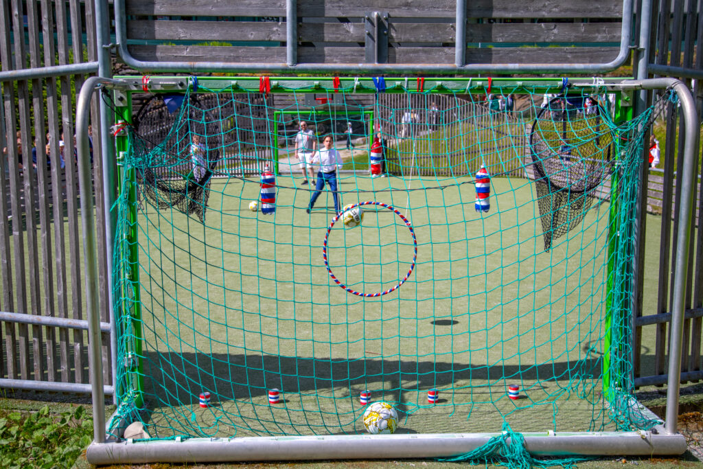 FULLTREFFAR 2: Det var mange moghegheiter for å bruka opp energien. På skuleplassen var det både kappløp, ball i bøtta, fotball – og potetløp. FOTO: Siri Ravn